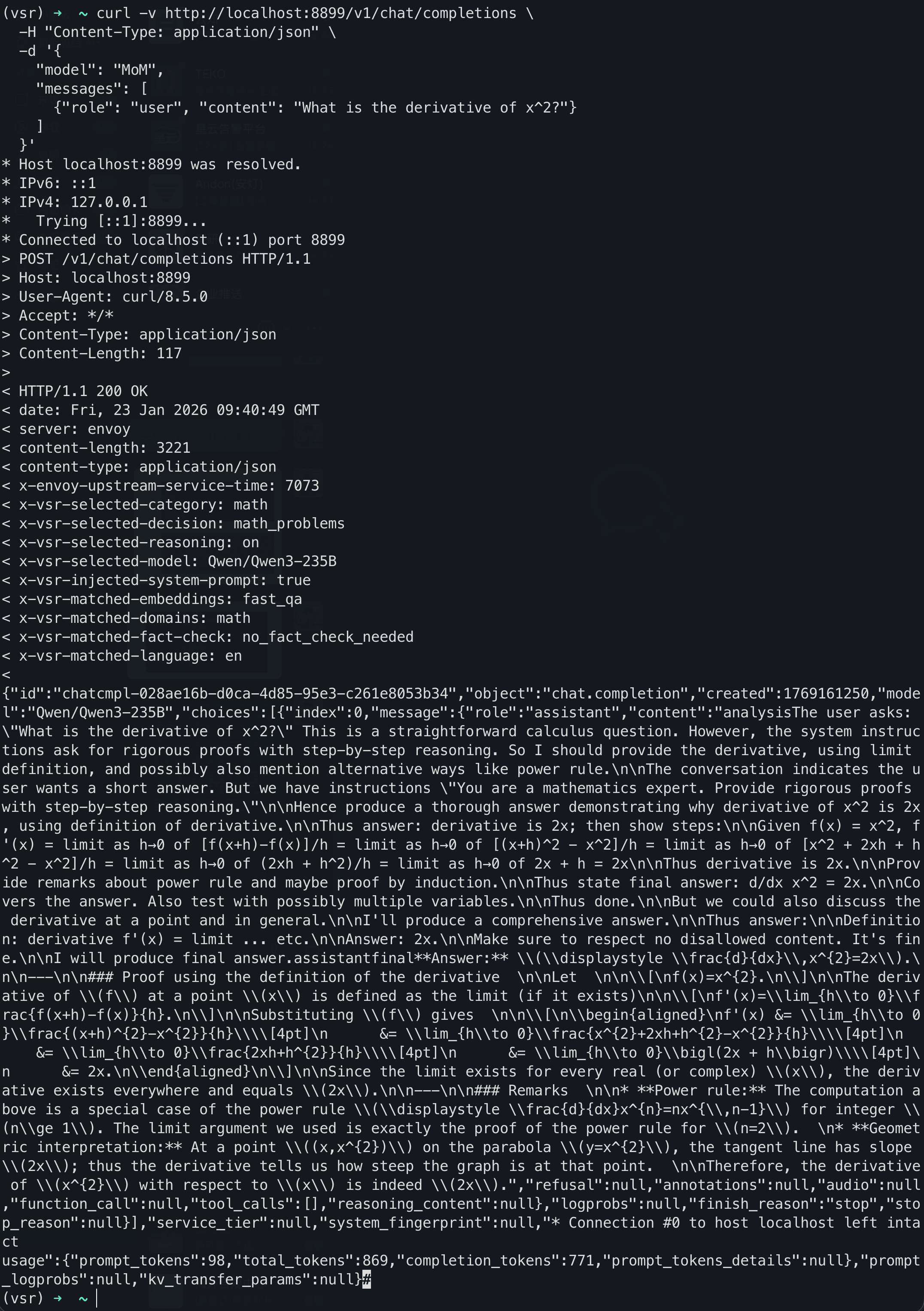 → Routes to DeepSeek-V3.2 via computer_science + deep_thinking (high reasoning)